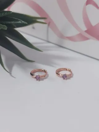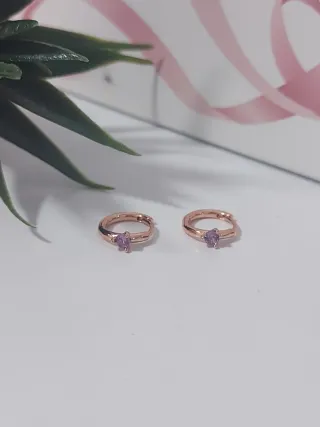 Elegantes pendientes de aro de Pandora con un delicado corazón morado Pequeños. - Diseño de aro. - Detalle de corazón. - Color dorado y morado.