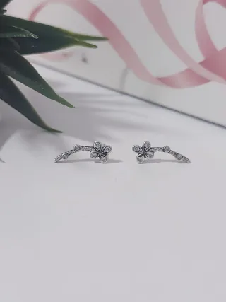 Preciosos pendientes de la marca Pandora con un diseño de flores. - Diseño floral con circonitas. - Cierre de presión.