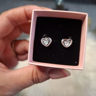 Elegantes pendientes de la marca Pandora, con un diseño de corazón y circonita. - Elaborados en plata. - Cierre de presión. Sin estrenar Original