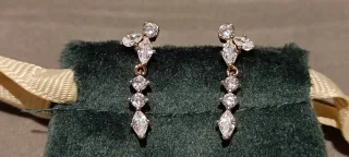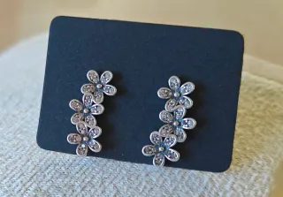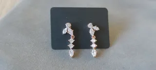 Elegantes pendientes con un diseño de olas y adornados con pequeñas circonitas brillante. Envío en su cajita, usados solo en ocasiones