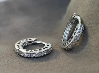 Pendientes de aro Pandora, con etiqueta y caja. Pagados 89€ y nunca se han utilizado. le falta solo un pequeño brillo en la parte interna, por lo tanto no se nota nada.