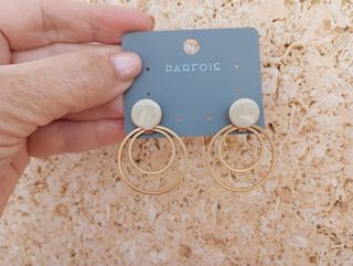 Pendientes aros dorado mate y pieza de arriba nacarada de Parfois. Nuevos. Sin usar