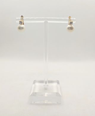Elegantes pendientes de plata con perlas. - Diseño clásico y sofisticado. - Detalle de pequeñas piedras alrededor de la perla.
