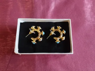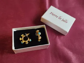 Conjunto de cinco pares de pendientes de la marca Fina Bijouterie - pendientes Perlas turquesa. - Pendientes de perlas doradas. - Pendientes con piedra turquesa. - Pendientes con circonitas. - Pendientes dorados con diseño retorcido. Todos sin estrenar Y envueltos separadamente para regalos visita mi perfil hay muchas cosas bonitas