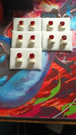 Pendientes de bisutería de perla con piedra roja. Sin usar. Precio por unidad - 8€ Son sin nickel y no dan alergia. Si compra directamente desde el anuncio se envía 1 unidad.