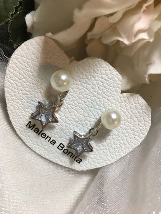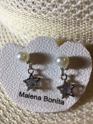 Elegantes pendientes de la marca Malena Bonita, perfectos para novias o cualquier ocasión especial. - Diseño en forma de estrella con detalles dorados. - Adornados con perlas blancas. - Cierre seguro para mayor comodidad. sin estrenar ni probar Visita todo mi perfil