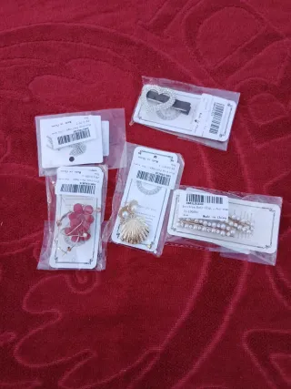 Conjunto de accesorios para el cabello con varios diseños. - Incluye 5 piezas. - Diseños variados: corazón, conchas, flores y perlas. - Fabricado en China.