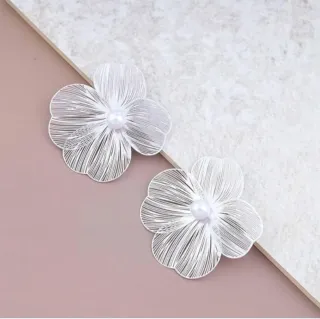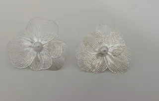 Pendientes grandes de flor con perla