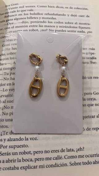 Set de pendientes variados. - Dos pendientes con brillantes. - Dos pendientes de perlas. - Dos pendientes con acabado texturizado en tono dorado. - El carton donde estan los pendientes tiene alguna mancha de estar guardados, los pendientes no se han usado nunca.