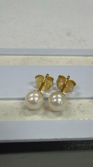 Pendientes perla akoya, oro 14K ✨ Pendientes de perlas estilo (tipo botón) ✨ Piezas muy bonitas y elegantes, perfectas para uso diario o para arreglarse. • Perlas: color blanco/crema con brillo bonito • Metal: oro 14K (ganchos/palillos con sello 14K, ver foto) • Cierre: tipo tuerca • Estado:muy buen estado
