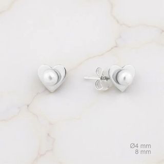 Elegantes pendientes con forma de corazón y perlas naturales de 8mm de diámetro. - Material: plata de ley 925, chapada en rodio. - Procedencia: Diseñado y fabricado en España por Vanguerati. - Certificación: Incluye Certificado de Autenticidad y grabado nacional Ecomep A2 LABORATORY. - Embalaje: Entregado en una caja de lujo de cuero de imitación y terciopelo negro.