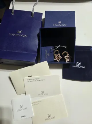 Caja original de Swarovski, ideal para guardar pendientes. - Color rosa. - Interior con soporte de espuma. - Logo de cisne de Swarovski en la tapa interior.
