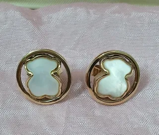 Tal como se ven en las fotos. Preciosos pendientes Tous con diseño de osito. Elaborados en Vermeil (plata de ley recubierta de oro), con baño de oro rosa 18Kt sobre plata de ley y Nácar. Fabricada con plata de primera ley con baño de oro y 3 micras de espesor. Colección Camille. Sin caja original. Cierre a presión. Detalle central de osito de nácar blanco. Motivo 1,4 cms. Muy poco uso. Muy buen estado. Muy cuidados.