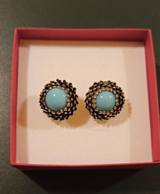 Pendientes bisutería color plateado y piedra color azul turquesa. Son de pinza.