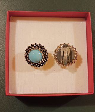 Pendientes de bisutería color dorado y piedra color azul turquesa. Son de pinza.