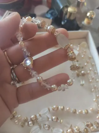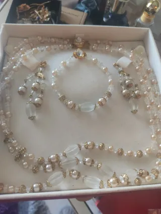 Elegante conjunto de bisutería vintage para mujer, compuesto por collar, pulsera y pendientes. - Piezas elaradas con cristal y detalles dorados. - Diseño delicado y atemporal.