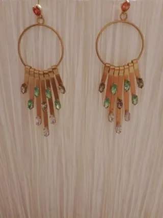 Pendientes bisutería, con piedras de colores. Son largos y de pinza.