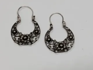 Elegantes pendientes vintage con diseño de filigrana. - Elaborados en plata. - Detalle floral y de hojas. - Cierre de gancho.