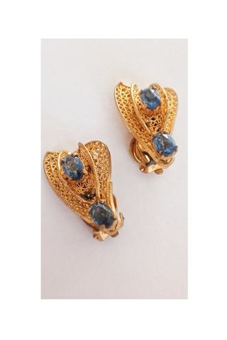 Pendientes filigrana chapados en oro con zafiros. Cierre clip Medidas: 2,5 cm Como nuevos