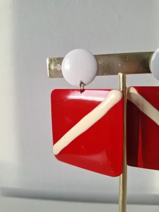 ✨ Pendientes vintage 📏 Hacen 4 cms aprox 🎨 Rojo y blanco ✅ Estado: Muy bueno