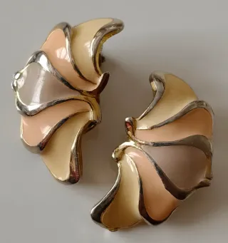 Preciosos pendientes de clip vintage. En metal y delicada combinación de tonos esmaltados. Tienen forma de alas de mariposa. Uno de ellos firmado con la inicial "D", firma a identificar. Vintage en buen estado, pueden tener alguna ligera marca del paso del tiempo ( ver fotos). Sin embalaje original.
