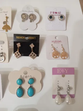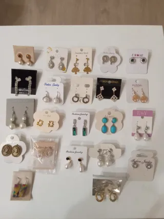 Lote de pendientes nuevos: colgantes con perlas, brillantes, pedrería. Algunos vintage. Sale a 0,90€ el par.