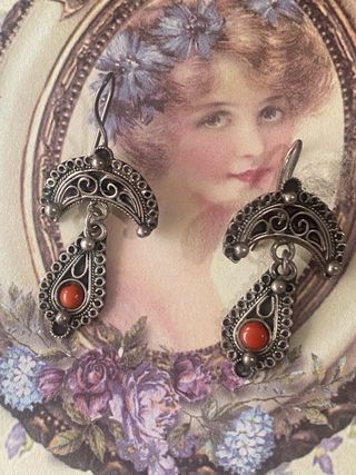 pendientes vintage de plata con un detalle de coral( el cierre esta un poco desgastado por su antigüedad) 🔴porfavor mirar las medidas en fotos y toda la descripcion antes de comprar y no accepto devolución ! Gracias 🙏