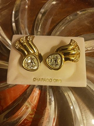 Pendientes cometa chapados en oro vintage de los 80 con gran piedra central y pequeños brillantitos .
