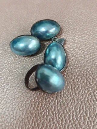 Anillo, pendientes, colgante Vintage perlas