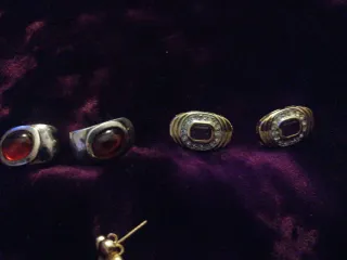Conjunto de pendientes variados. Total son 9 piezas de plata - anillo de plata maziza le falta frillo pulir - Pendiente vintage plata con marquesitas le faltan algunas también se pude utilizar como colgante - Pendientes de aro. - Pendiente cuadrado con piedra rosa. - Pendiente con piedra turquesa. -colgante de Fátima