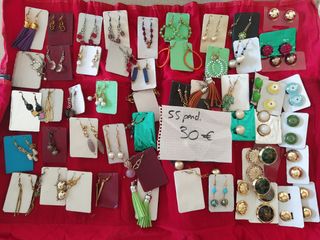 Lote de 26 pendientes variados de todas las épocas desde los años 70 80 hasta la actualidad. Hay pendientes largos de pinza y cierre a presión. Todos nuevos sin uso. Ver medidas en las fotos.