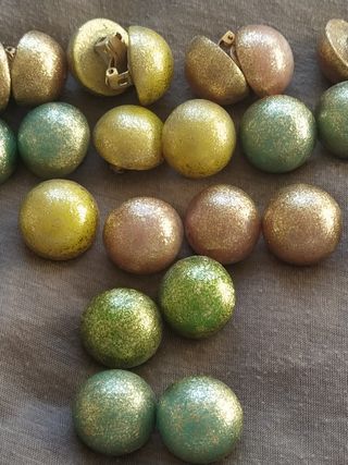 12 pendientes antiguos de los años 70, con cierre de pinza/clip. Hay que limpiarlos un poco.