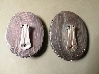 Pendientes de pinza, no precisan agujero, son vintage, miden 5 cm. La terminacion de uno de ellos tiene el baño dorado levantado, adjunto foto.