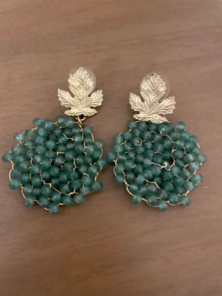 Pendientes hoja dorada con cuentas verdes Nuevos