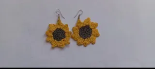 Pendientes hechos a mano con forma de girasol. - Diseño tejido a crochet. - Colores amarillo y marrón. Puedes ver otros tipos que tengo en el perfil, están hechos a mano.