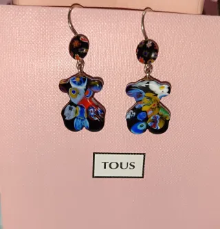 Elegantes pendientes Tous con un diseño único. - Elaborados en plata. - Ositos de espinelas negras - Con certificado de autenticidad