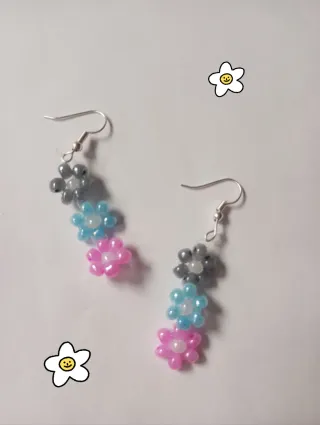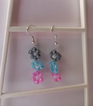 Delicados pendientes de flores en tonos gris, rosado y celeste🩷🩵🩶 hechos a mano. Perfectos para darle un toque elegante y colorido a cualquier look.