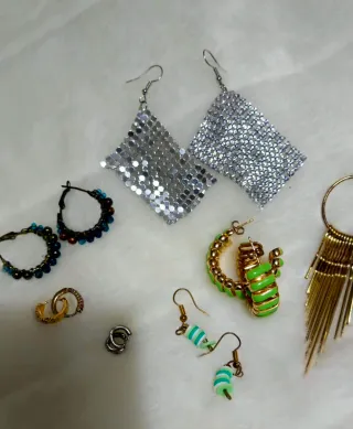Par de pendientes. - Diseño elegante. - Combinan varios materiales.
