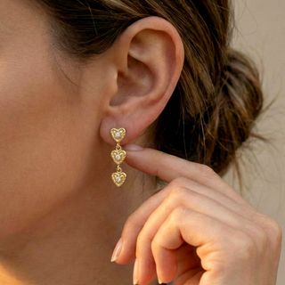 Elegantes pendientes dorados, perfectos para añadir un toque de brillo a tu look. - Diseño con circonitas incrustadas. - Cierre seguro y cómodo.