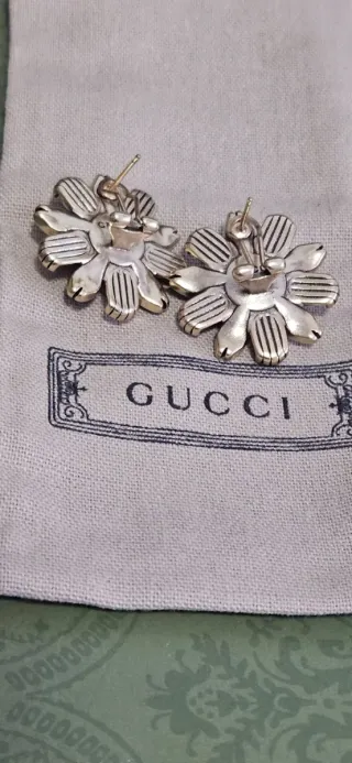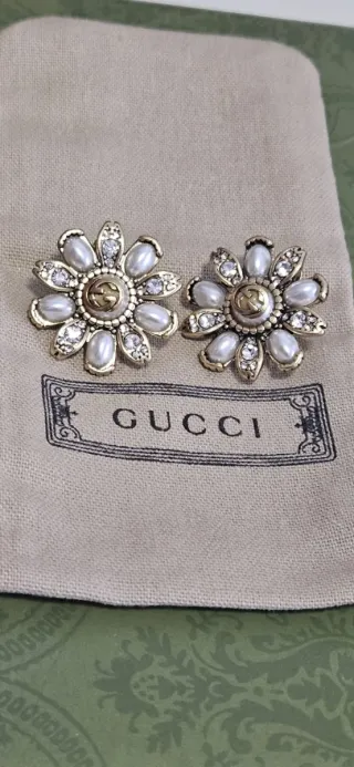 Pendientes Flor Perla y Cristal Gucci Dorados