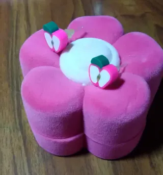 Pendientes en forma de manzanas antialergicos / Hypoallergenic apples earrings / Boucles d'oreilles pommes hypoallergéniques. Pendientes en forma de manzana antialérgicos de color rosa fucsia, nuevos. Es la mitad de una manzana y sus colores son rosa fucsia para el exterior, blanco y verde claro para el interior y verde oscuro para la hoja. Quedan muy elegantes y bonitos. Medidas: 1 cm. de alto y 1 cm. de ancho. Se entregan con una bolsita de color muy coqueta. El joyero rosa de las fotos, no está a la venta. #mujer #niña #pendientes #nuevo #manzana #fucsia #antialérgico #bolsa #regalo #accesorio #complemento #woman #girl #earring
