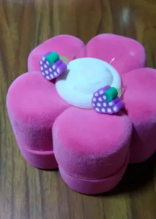 Pendientes en forma de racimo de uvas antialergicos / Hypoallergenic bunch of grapes earrings / Boucles d'oreilles grappe de raisin hypoallergéniques. Pendientes en forma de racimo de uvas antialérgicos, nuevos. Es un racimo de uvas de color morado y blancas con hojas de color verde. Quedan muy elegantes y bonitos. Medidas: 1 cm. de alto y 1 cm. de ancho. Se entregan con una bolsita de color muy coqueta. El joyero rosa de las fotos, no está a la venta. #mujer #niña #pendientes #nuevos #racimo #uvas #antialérgico #bolsa #regalo #accesorio #complemento #woman #girl #earrings #new #bunch #grapes #hypoallergenic #bag #gift #accessory