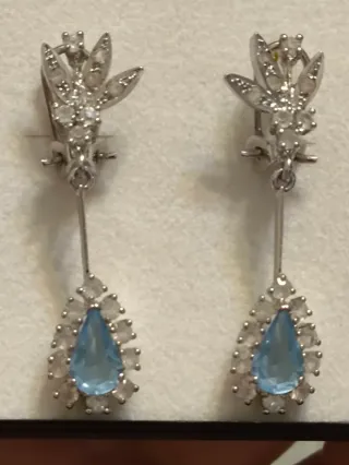 Elegantes pendientes colgantes de la marca Vidal & Vidal. - Diseño con forma de lágrima. - Detalles de circonitas. - Cierre de presión. Costaron 148 y nunca se usaron, conservo el ticket del corte ingles