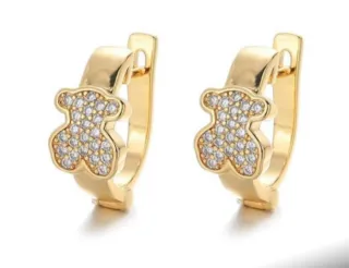 Preciosos pendientes con diseño de oso, adornados con pequeñas circonitas brillantes. Un toque de elegancia para cualquier ocasión. - Diseño de oso. - Detalles en circonitas. - Acabado dorado.