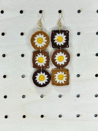 Pendientes Crochet Flor Marrón y Amarillo