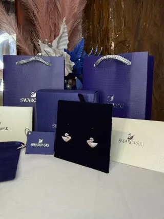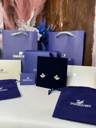 Elegantes pendientes con diseño de cisne. - Acabado en plata y blanco. - Incluye caja y bolsa de la marca. - Nuevo a estrenar.