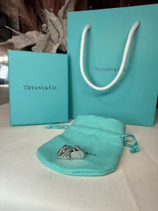 Elegantes pendientes de Tiffany & Co. con forma de corazón. - Diseño icónico de la marca. - Acabado plateado brillante.