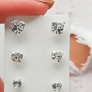 Conjunto de tres pares de pendientes con forma de corazón. - Diseño de corazón con circonita. - Cierre de presión.