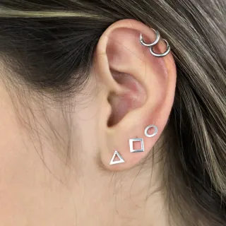 Set 3 Pendientes Plata Triángulo Cuadrado Círculo