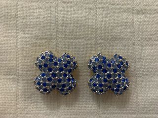 Elegantes pendientes de la marca Swarovski. - Diseño en forma de trébol. - Detalle de cristales en tonos azules.